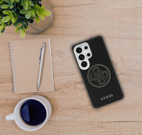 În partea de jos se află logo-ul Guess, care subliniază subtil prestigiul acestei huse.