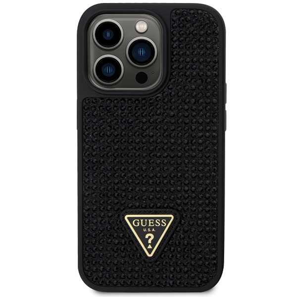 Husa Guess Rhinestone Triangle compatibila cu iPhone 14 Pro, Negru