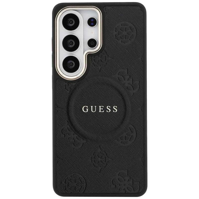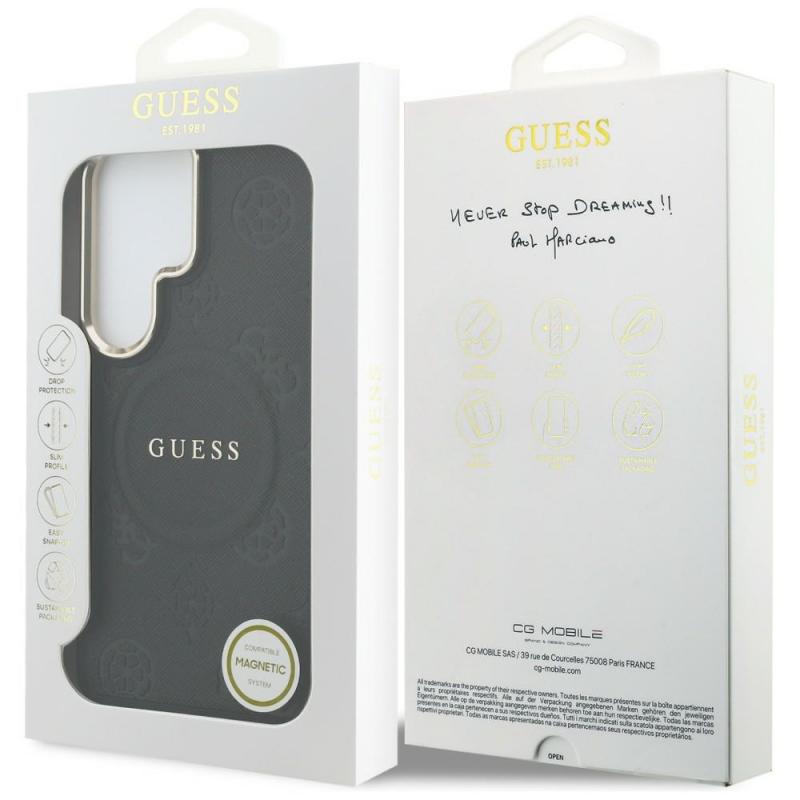 Husa Guess Saffiano Peony Embossed Ring cu MagSafe compatibila cu Samsung Galaxy S26 Ultra, Negru