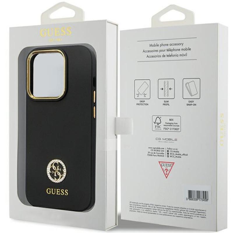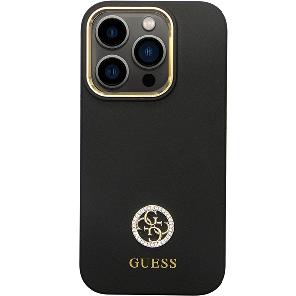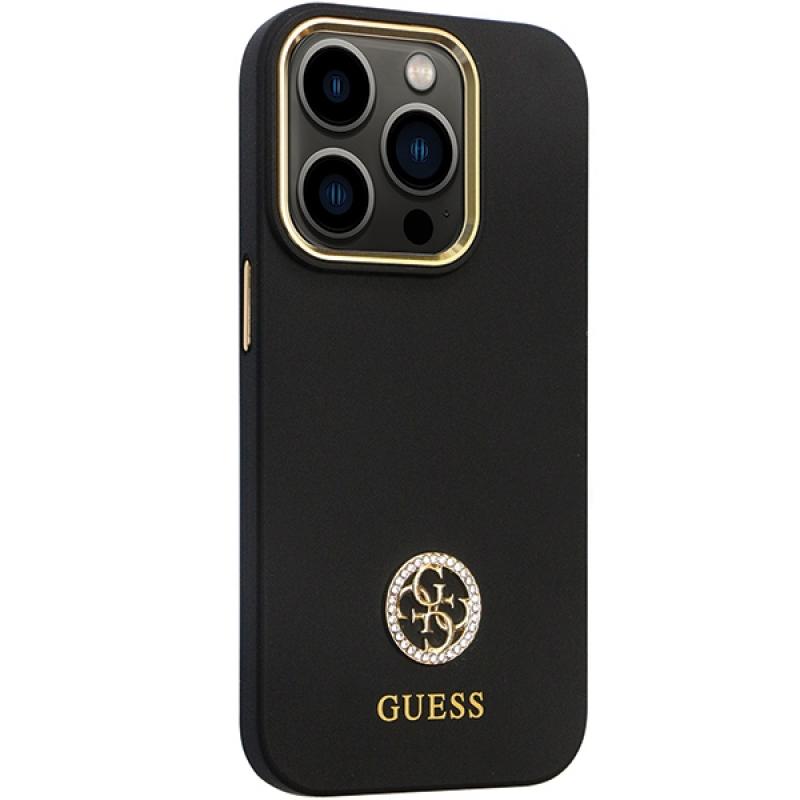 Husa Guess Silicone Logo Strass 4G compatibila cu iPhone 14 Pro, Negru