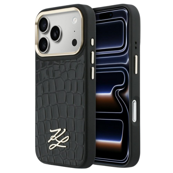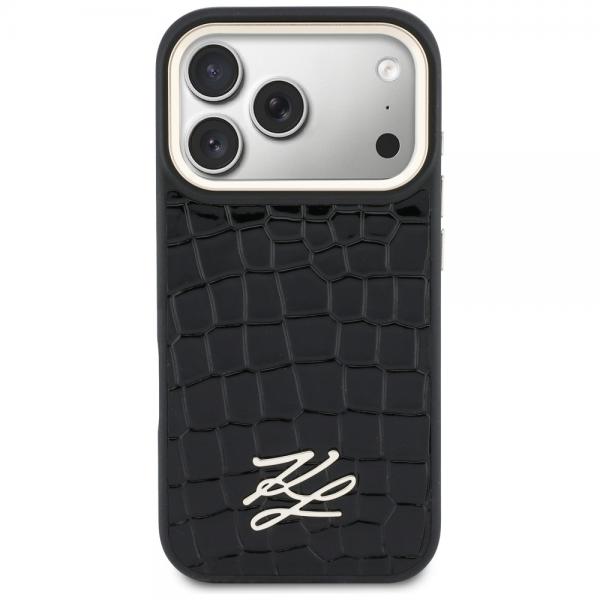 Husa Karl Lagerfeld Croco KL Script Logo cu MagSafe compatibila cu iPhone 17 Pro, Negru