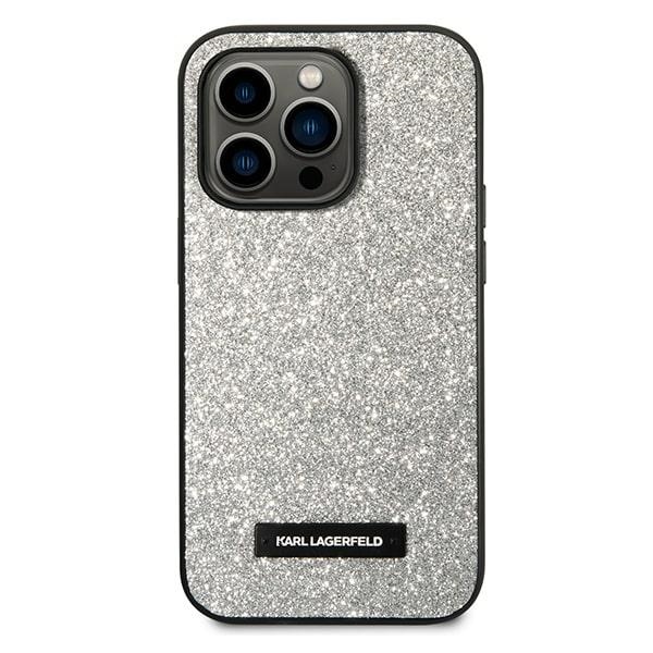 Husa Karl Lagerfeld Glitter Plaque Logo compatibila cu iPhone 14 Pro Max, Silver