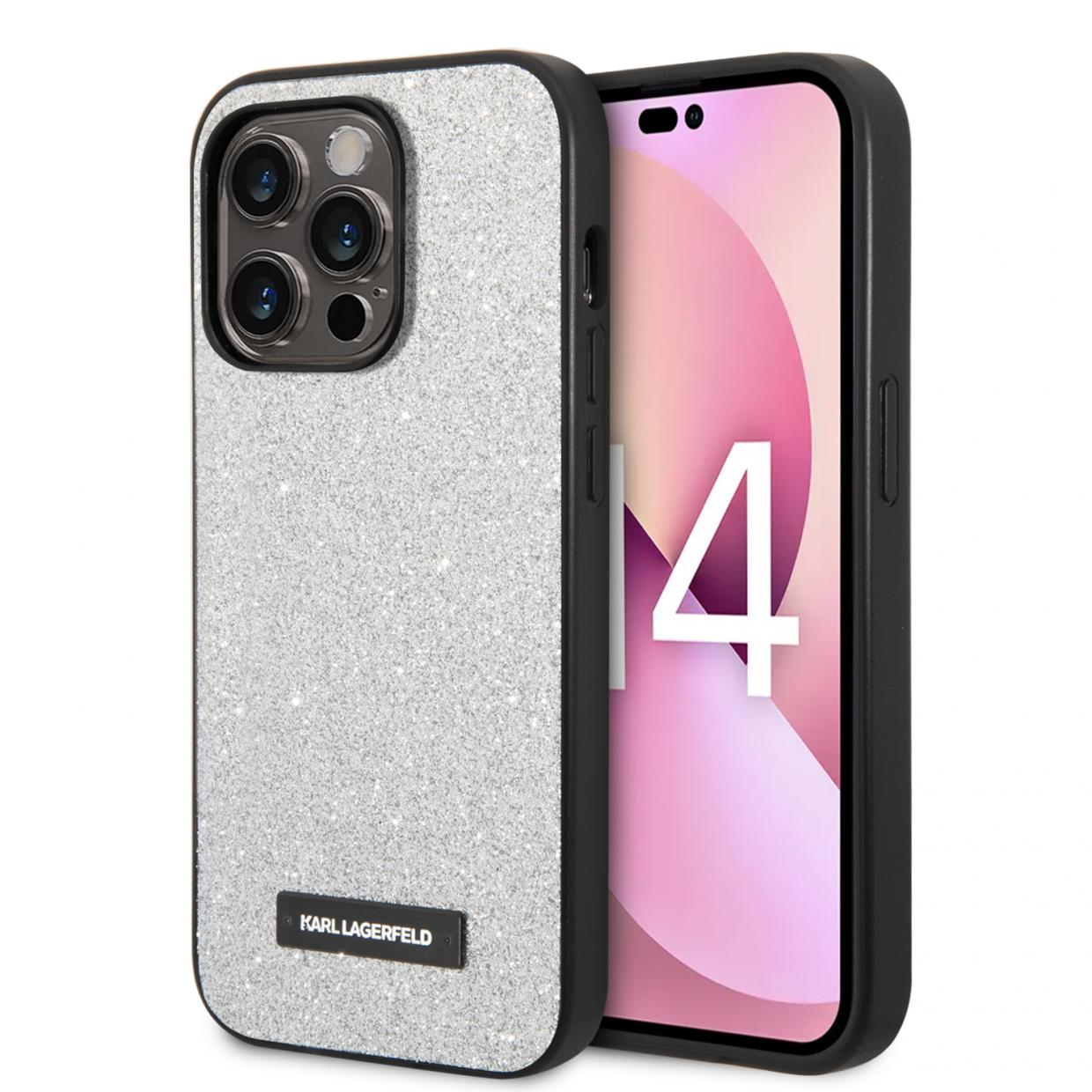 Husa Karl Lagerfeld Glitter Plaque Logo compatibila cu iPhone 14 Pro Max, Silver Cod produs: KAR-178371