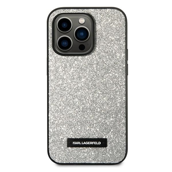 Husa Karl Lagerfeld Glitter Plaque Logo compatibila cu iPhone 14 Pro, Silver