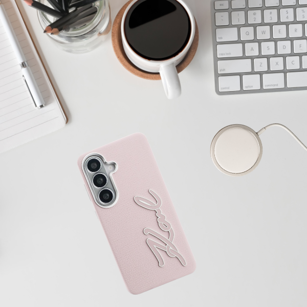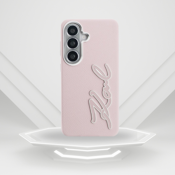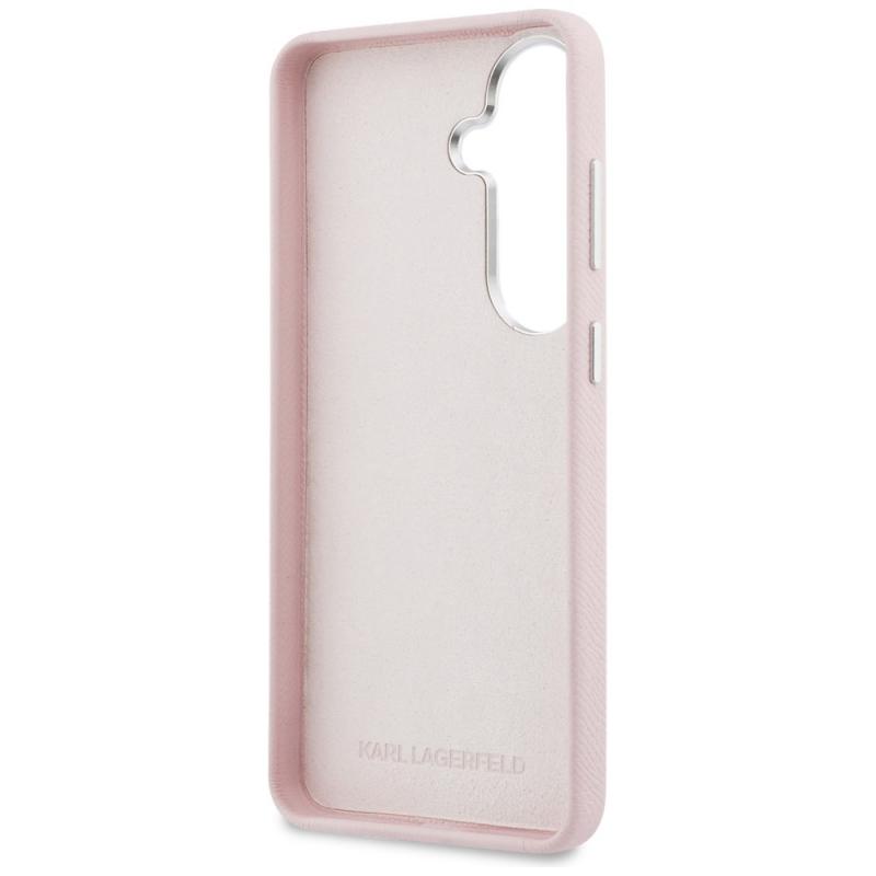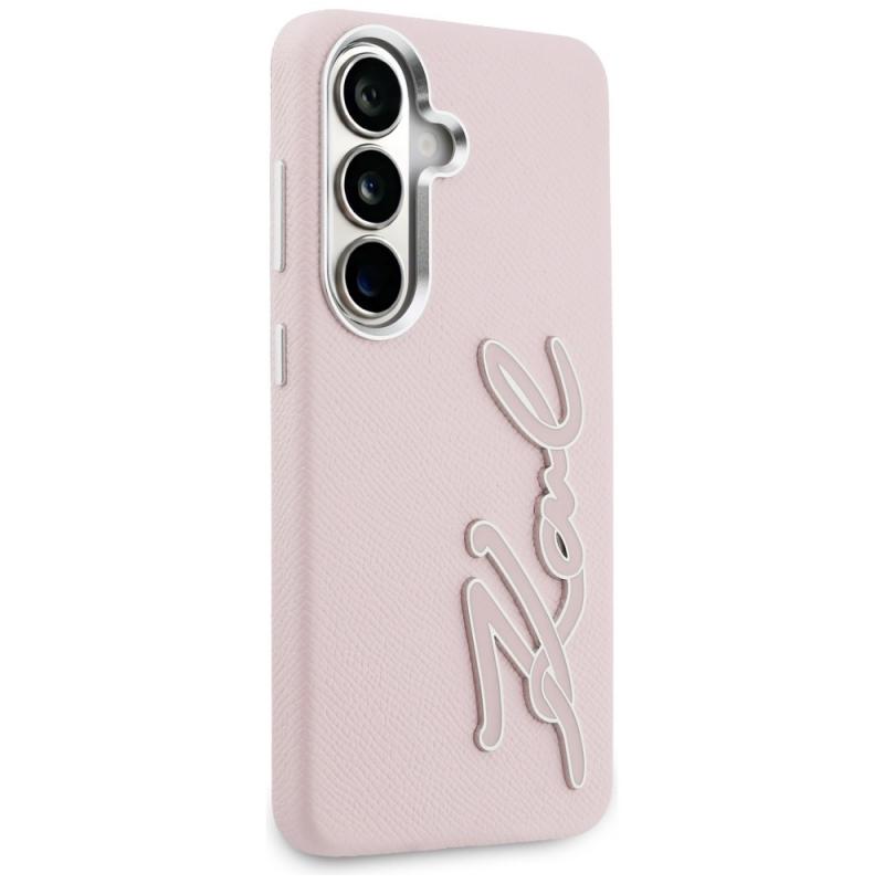 Husa Karl Lagerfeld Grained Signature Metal Resin Logo compatibila cu Samsung Galaxy S26, Roz