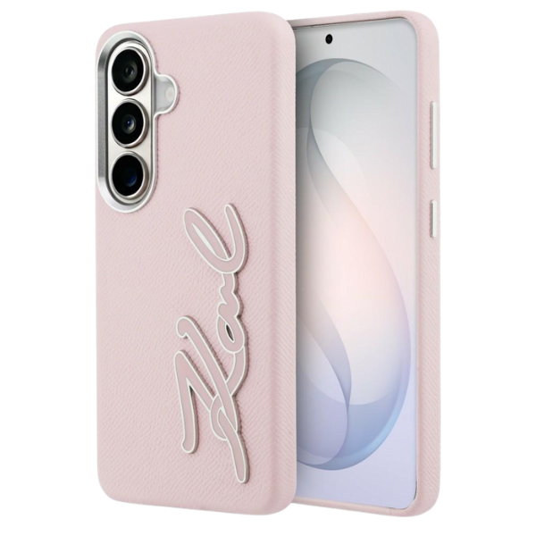 Husa Karl Lagerfeld Grained Signature Metal Resin Logo compatibila cu Samsung Galaxy S26, Roz Cod produs: KAR-180347