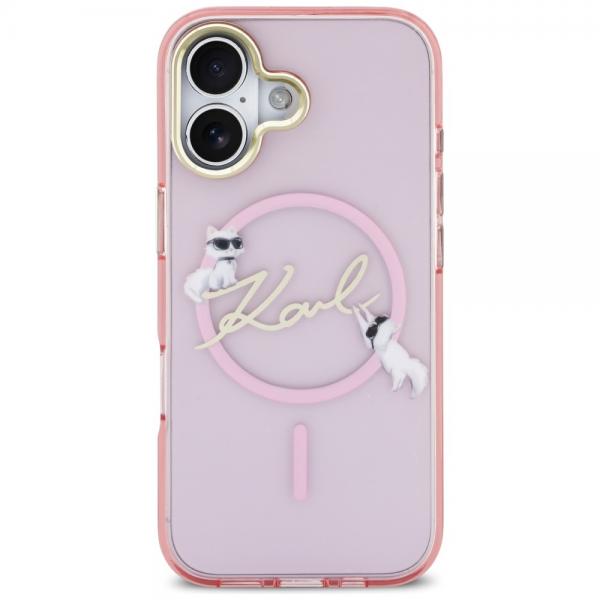 Husa Karl Lagerfeld IML Choupettes and Karl Script Logo cu MagSafe compatibila cu iPhone 17, Roz