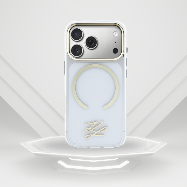 Colecția IML KL Script Logo MagSafe este eleganță în forma sa cea mai pură. Această colecție este completată de inițialele metalice KL ale legendarului designer Karl Lagerfeld.