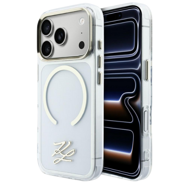 Husa Karl Lagerfeld IML KL Script Logo cu MagSafe compatibila cu iPhone 17 Pro, Transparent Cod produs: KAR-177801