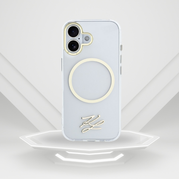 Colecția IML KL Script Logo MagSafe este eleganță în forma sa cea mai pură. Această colecție este completată de inițialele metalice KL ale legendarului designer Karl Lagerfeld .