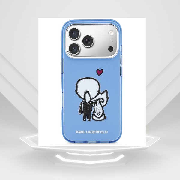 Husa Karl Lagerfeld Karl and Choupette Back cu MagSafe compatibila cu iPhone 17 Pro, Albastru