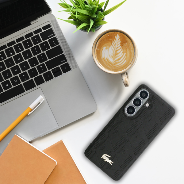 Husa Lacoste Nomograme Gold Logo cu MagSafe compatibila cu Samsung Galaxy S26, Negru Cod produs: LAC-177944