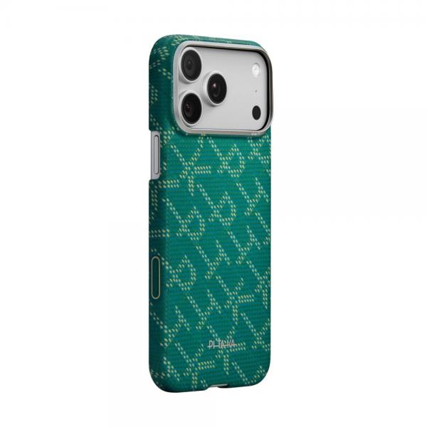 Husa PITAKA Ultra-Slim Monogram cu MagSafe compatibila cu iPhone 17 Pro Max, Gold / Green