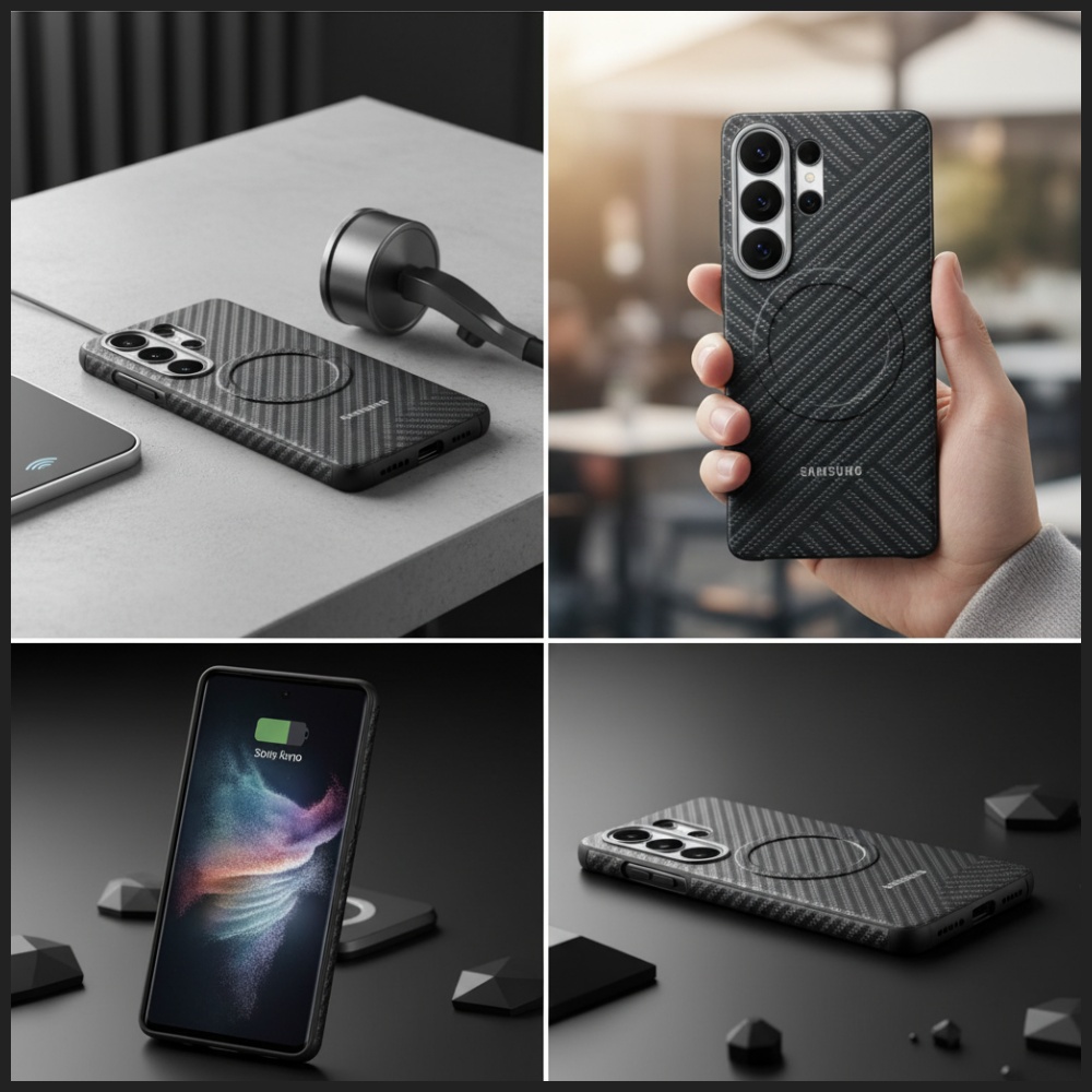 Samsung Carbon Magnet dispune, de asemenea, de un aspect elegant – un design minimalist în gri închis cu un finisaj subtil, care se îmbină perfect cu stilul modern al Samsung Galaxy S26 Ultra. Carcasa nu numai că protejează dispozitivul, dar îi conferă și un caracter exclusiv, îmbunătățindu-i estetica modernă.