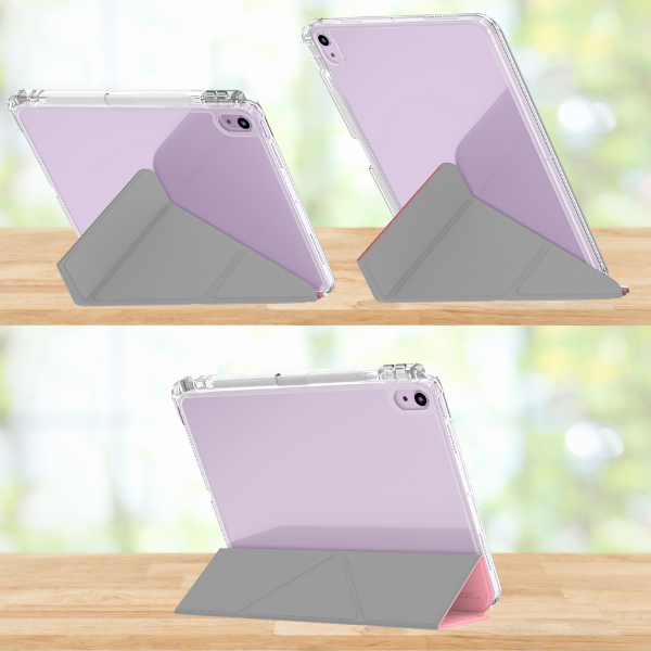Carcasa este echipată cu un capac tip Y pliabil și detașabil, care îți permite să așezi iPad-ul în trei poziții convenabile – perfect pentru scris, vizionarea filmelor sau conferințe video.