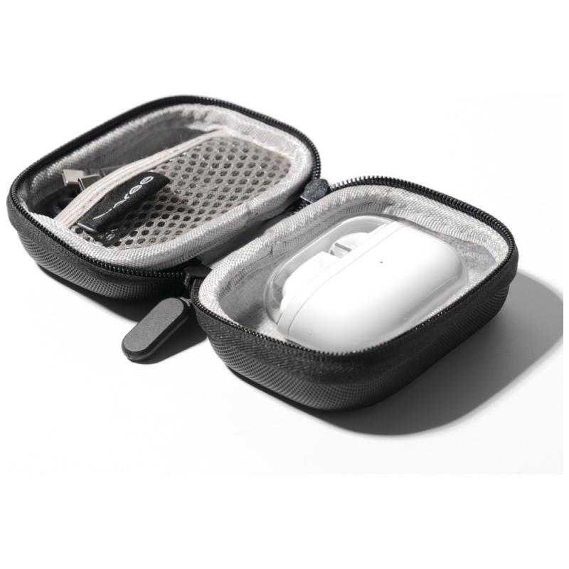 Husa este fabricată din materiale care protejează eficient împotriva șocurilor, stropilor și zgârieturilor. Utilizarea unui strat dublu și a unei spume speciale absorbante de șocuri garantează că dispozitivele stocate în interior sunt protejate de daune neașteptate. Interiorul este moale și delicat, prevenind zgârieturile pe suprafața căștilor. Construcția solidă garantează durabilitate, permițându-vă să transportați în siguranță accesoriile în fiecare zi.