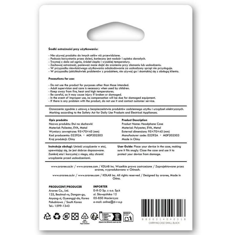Husa universala pentru casti in ear Araree, 9 × 7 × 3 cm, Negru Cod produs: ARA-176783
