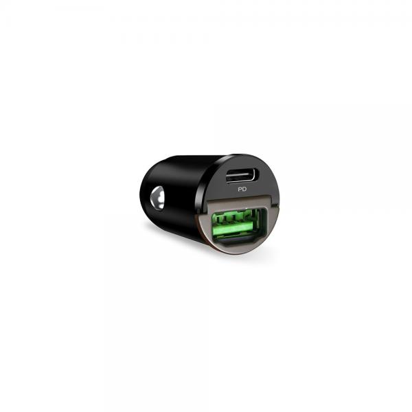 Incarcator auto Puro Mini, 1x USB-C / 1x USB-A, 30W, 3A, Negru