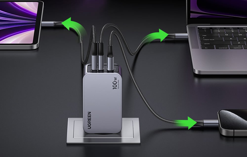 UGREEN Nexode Pro este un încărcător compact care oferă posibilități enorme. Oferă o putere de până la 100 W, iar datorită celor 3 porturi USB disponibile, poți reîncărca mai multe dispozitive simultan. Suportă standardele de încărcare rapidă și îl vei putea folosi cu succes în combinație cu multe echipamente populare, inclusiv laptopuri, smartphone-uri sau console de jocuri.