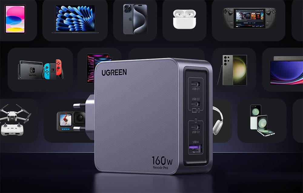 Cu încărcătorul UGREEN Nexode Pro, încărcarea va dura și mai puțin timp! Oferă o putere de până la 160 W și suportă multe standarde de încărcare rapidă, ceea ce se traduce printr-un timp și mai scurt de reîncărcare a dispozitivului conectat. Folosește tehnologia avansată GaN, iar datorită celor 4 porturi USB disponibile, poți încărca simultan până la patru dispozitive.