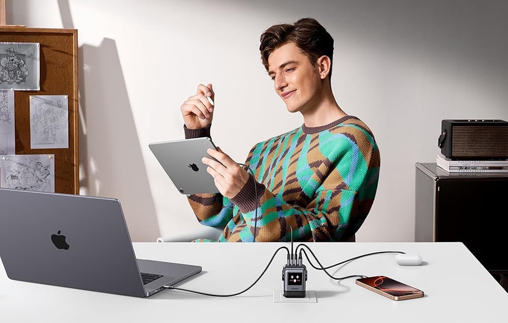 Încărcătorul Ugreen Nexode RG combină performanța maximă cu un design unic și adorabil, care îl diferențiază de alte dispozitive. Echipat cu 3 porturi USB-C și 1 port USB-A, permite încărcarea simultană a patru dispozitive, distribuind inteligent o putere de până la 100 W. Datorită tehnologiei GaN, încărcătorul oferă o încărcare rapidă, eficientă și sigură, păstrând dimensiuni compacte. Este o alegere excelentă atât pentru acasă, birou, cât și pentru călătorii – indiferent de dispozitivele pe care le deții.