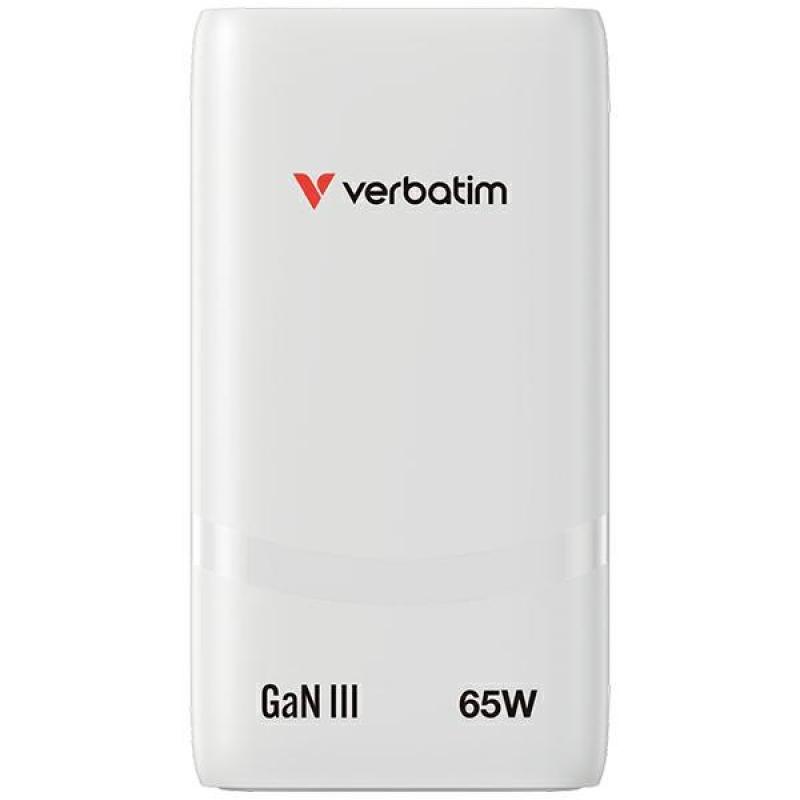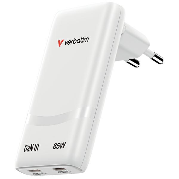 Incarcator retea Verbatim Fold n Go GaN, 65W, 3A, 2xUSB-C, Alb