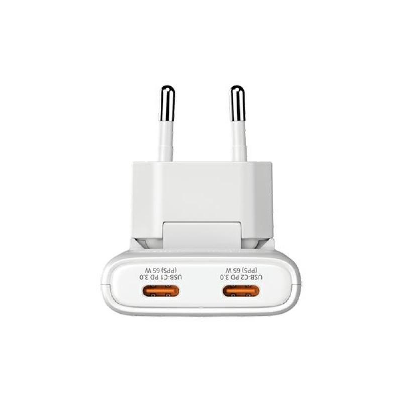 Dispozitivul este echipat cu două porturi USB-C care suportă încărcarea rapidă cu standardele Power Delivery 3.0 și PPS. Aceasta înseamnă că poți încărca cu ușurință smartphone-uri, tablete, console portabile și laptopuri care necesită putere mai mare. Încărcătorul distribuie inteligent puterea între dispozitivele conectate - până la 65W în total - permițându-ți să încarci două dispozitive simultan fără a sacrifica performanța. Plugul EU pliabil practic face ca încărcătorul să fie și mai compact și bine protejat în timpul transportului. Cu dimensiuni de doar 86 × 46 × 26.5 mm și o greutate de aproximativ 100 g, dispozitivul se potrivește cu ușurință într-o geantă, rucsac sau husă de accesorii.