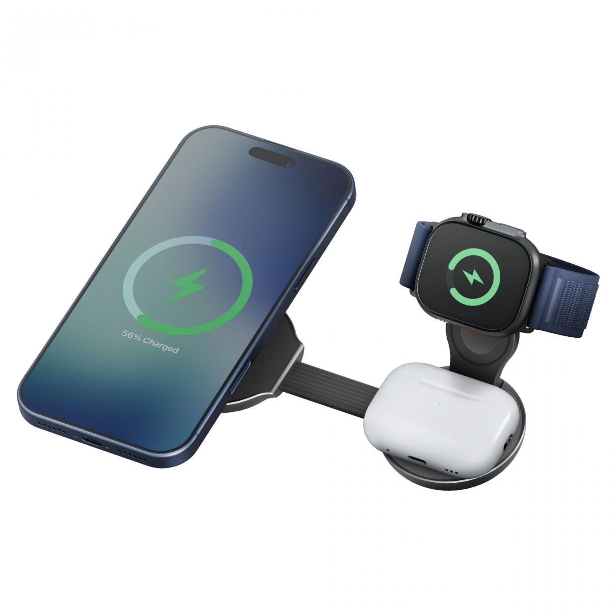 Incarcator Wireless 3 in 1 Energea Alumag Trio 2 cu MagSafe, Pliabil, Incarcare Wireless 25W, Alimentare USB-C, Gunmetal Cod produs: ENE-182028