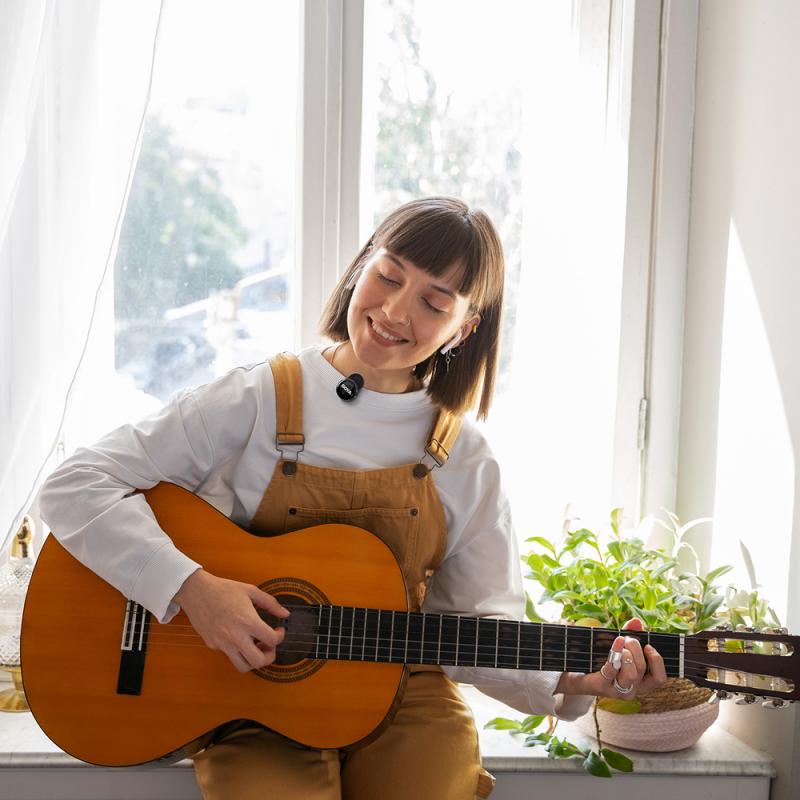 Design compact: microfonul mic și ușor (9 g) este practic invizibil în timpul înregistrării.