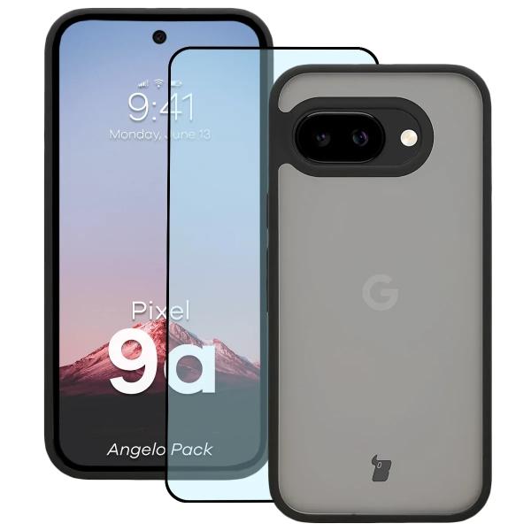Kit protectie 2 in 1 BizonMobile, Carcasa Bizon Angelo si Folie sticla securizata Bizon Glass Edge, compatibil cu Google Pixel 9a, Negru