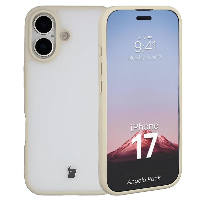 Kit protectie 2 in 1 BizonMobile, Carcasa Bizon Angelo si Folie sticla securizata Bizon Glass Edge, compatibil cu iPhone 17, Bej