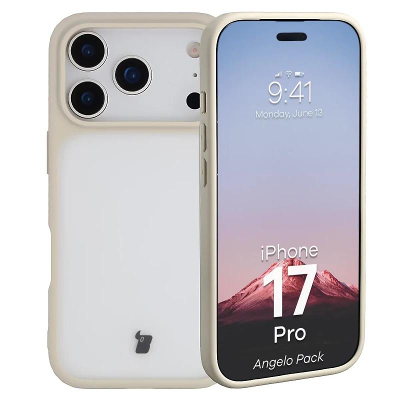 Kit protectie 2 in 1 BizonMobile, Carcasa Bizon Angelo si Folie sticla securizata Bizon Glass Edge, compatibil cu iPhone 17 Pro, Bej