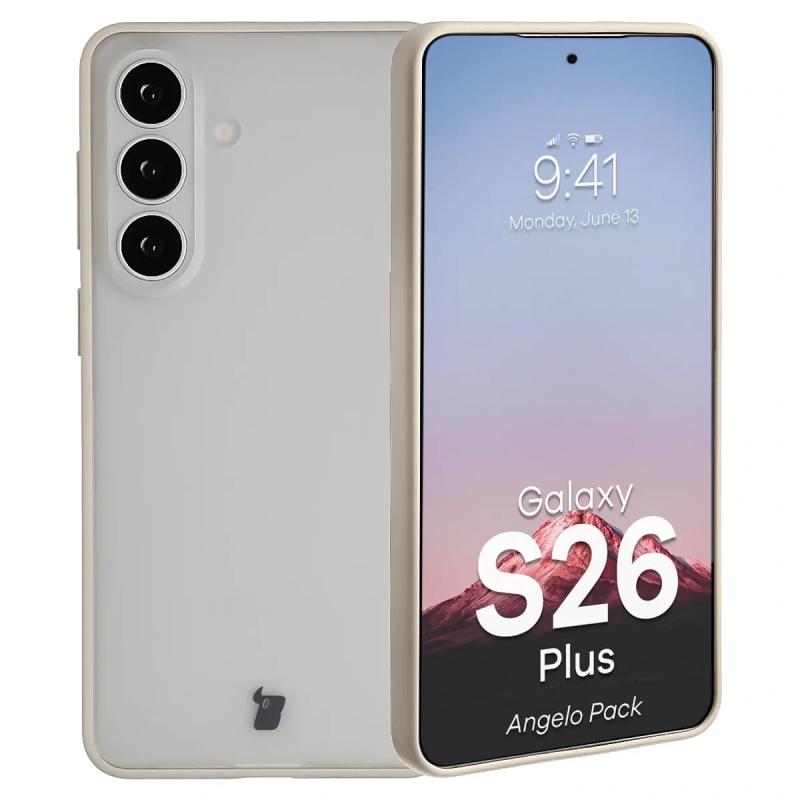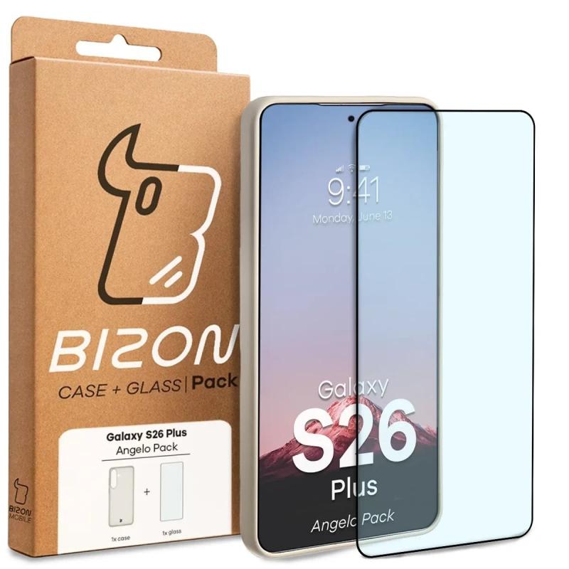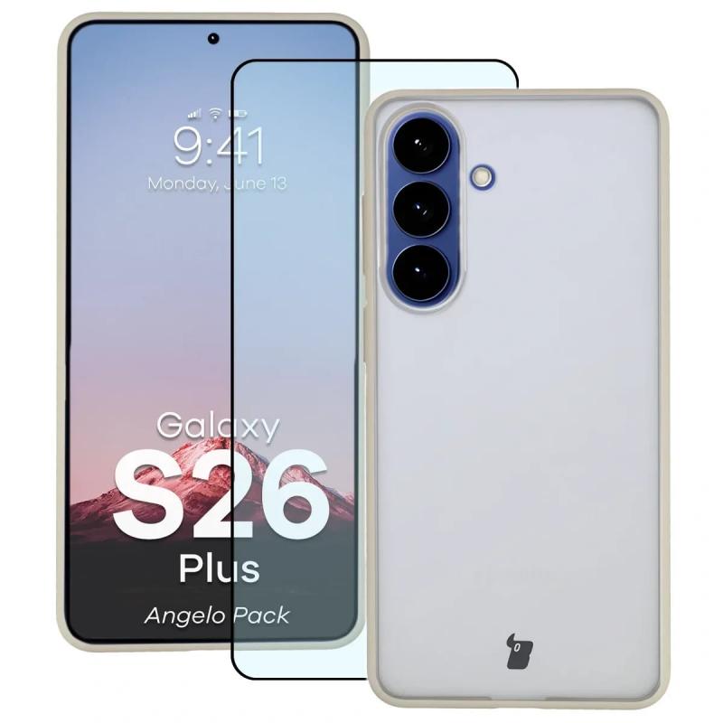 Kit protectie 2 in 1 BizonMobile, Carcasa Bizon Angelo si Folie sticla securizata Bizon Glass Edge, compatibil cu Samsung Galaxy S26 Plus, Bej