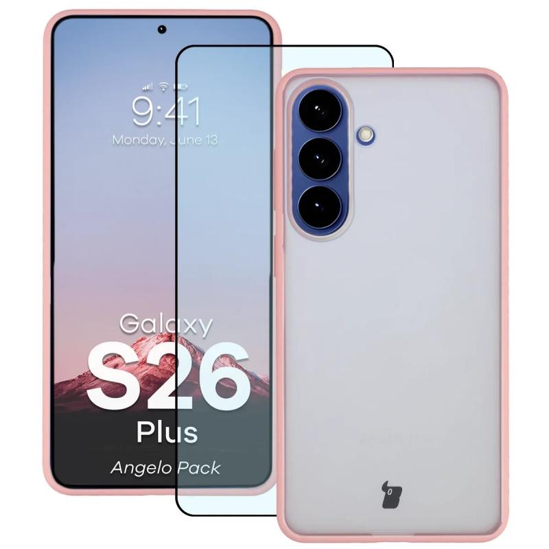 Kit protectie 2 in 1 BizonMobile, Carcasa Bizon Angelo si Folie sticla securizata Bizon Glass Edge, compatibil cu Samsung Galaxy S26 Plus, Roz