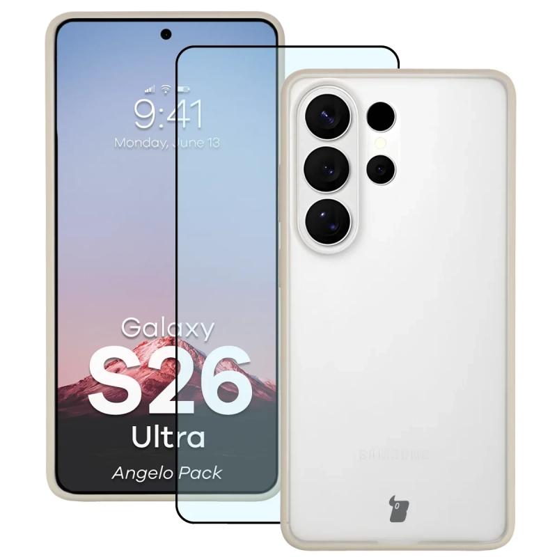 Kit protectie 2 in 1 BizonMobile, Carcasa Bizon Angelo si Folie sticla securizata Bizon Glass Edge, compatibil cu Samsung Galaxy S26 Ultra, Bej Cod produs: BIZ-180719