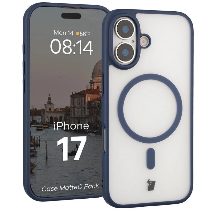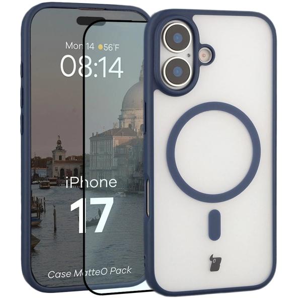 Kit protectie 2 in 1 BizonMobile, Carcasa Bizon MatteO si Folie sticla securizata Bizon Glass Edge, compatibil cu iPhone 17, Albastru