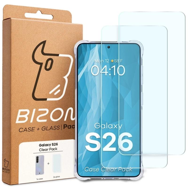 Kit protectie 2 in 1 BizonMobile, Carcasa Bizon Salpa si 2 Folii sticla securizata Bizon Glass Clear, compatibil cu Samsung Galaxy S26, Transparent