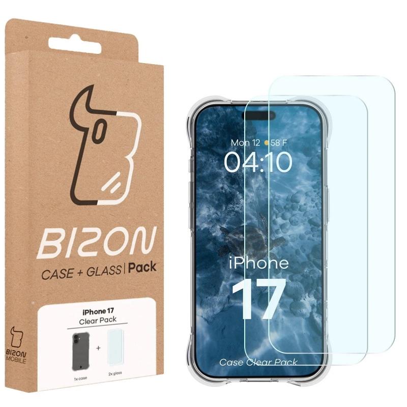 Kit protectie 2 in 1 BizonMobile Clear Pack, Carcasa Bizon Salpa si Folie sticla securizata Bizon Glass Clear 2, compatibil cu iPhone 17, Transparent