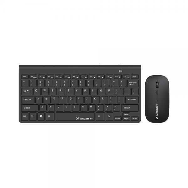 Kit tastatura si mouse Wozinsky WZKM-078, Wireless, Receiver USB, Baterii AAA, Negru