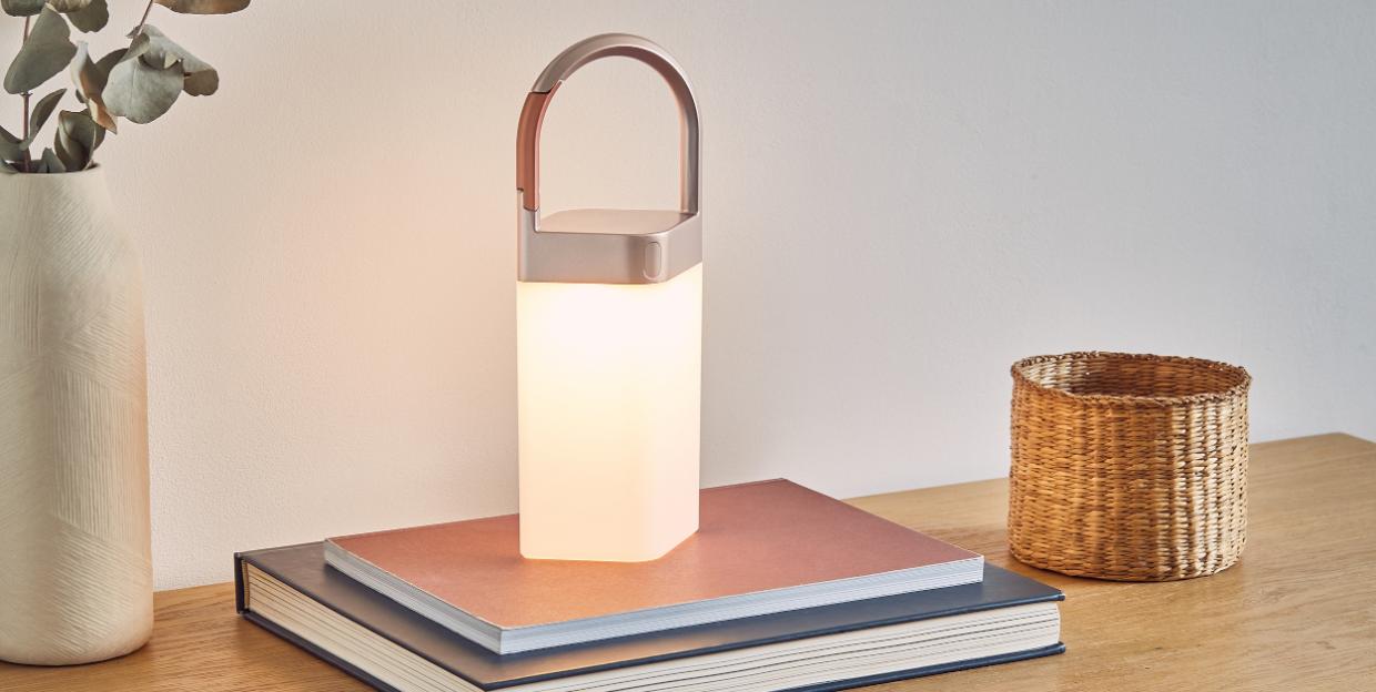 Lampa LED Horizon este echipată cu butoane tactile intuitive pentru ajustarea culorii și intensității luminii. Este alimentată de o baterie reîncărcabilă care oferă până la 12 ore de funcționare cu o singură încărcare, și durează doar 3 ore pentru a se încărca complet printr-un cablu USB-C.