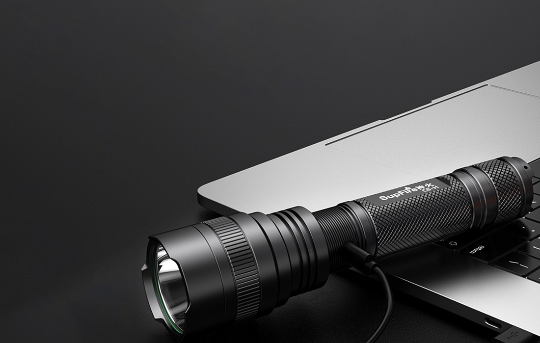 Lanterna este echipata cu un buton practic in partea de jos. Apasati mai tare pentru a porni sau opri dispozitivul. Apasati mai usor pentru a schimba modul de iluminare. Dispozitivul este rezistent la apa, ceea ce va permite sa o utilizati in diferite conditii meteorologice. Ploaia sau stropirea accidentala nu reprezinta o mare amenintare pentru aceasta. Folositi-va lanterna fara nici macar cea mai mica ingrijorare - apa nu este un obstacol! Bateria reincarcabila USB a lanternei ofera o durata de functionare de aproximativ 1-3 ore. Deci, puteti utiliza dispozitivul pentru o perioada foarte lunga de timp. Cu ajutorul acesteia va puteti intoarce in siguranta acasa dupa lasarea intunericului, puteti repara masina noaptea pe marginea drumului sau va puteti gasi animalul pierdut in intuneric. Cantarind doar 184g, lanterna este extrem de compacta si la indemana. Supfire asigura, de asemenea, siguranta utilizarii - C8-H are o distributie excelenta a caldurii, astfel incat dispozitivul nu este in pericol de supraincalzire si nu va ardeti. Pachetul include, de asemenea, un snur practic, cu ajutorul caruia puteti atarna convenabil lanterna la incheietura mainii si o puteti proteja de pierderi.