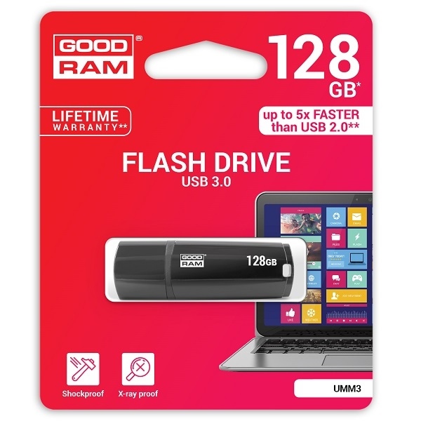 Memorie USB Goodram UMM3, 128GB, USB 3.0, USB-A, Negru