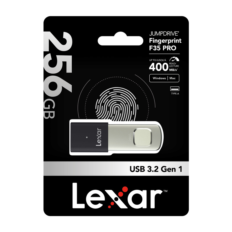 Memorie USB Lexar Fingerprint F35 PRO, 256GB, USB 3.2, Silver / Black