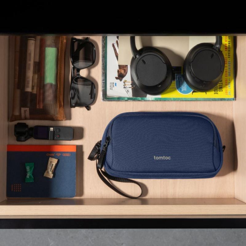 Organizator cabluri Tomtoc Light T12, Husa de depozitare accesorii mici, 24.5 × 7.0 × 13.0 cm, Navy Blue