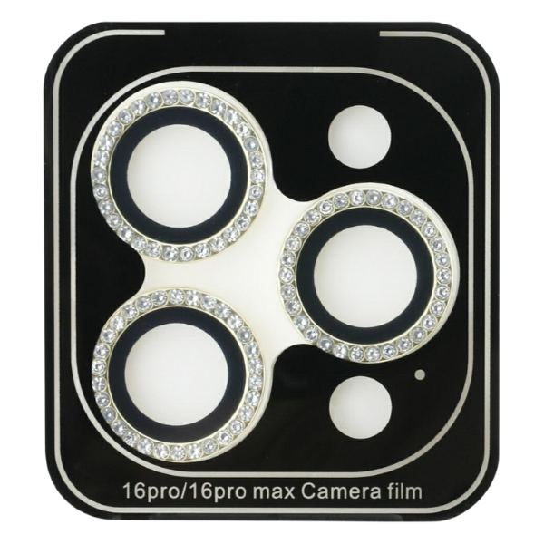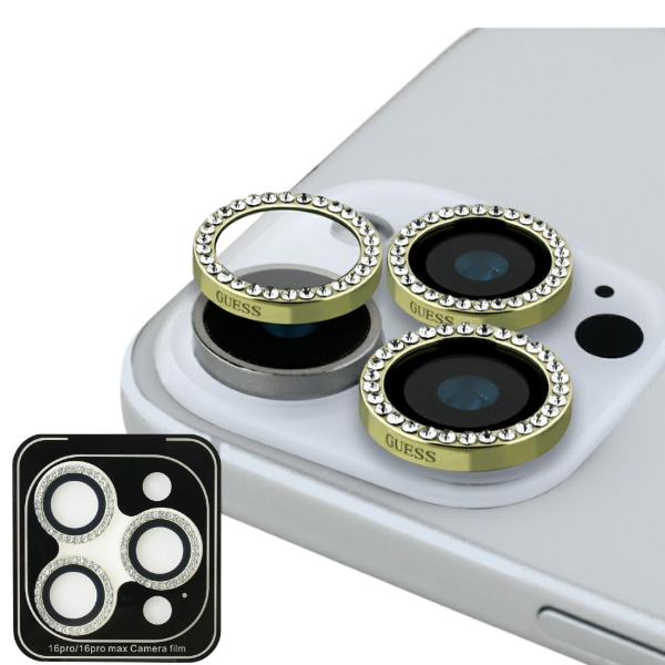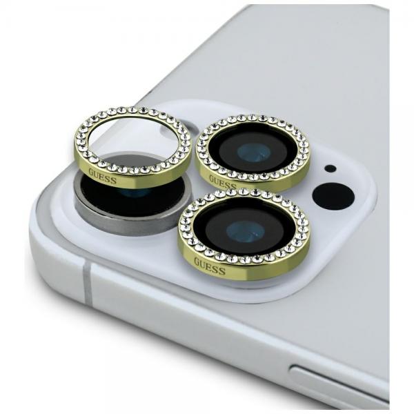 Protectie sticla securizata camera foto Guess Rhinestone Camera Lens Glass compatibila cu iPhone 16 Pro / 16 Pro Max, Gold Cod produs: GUE-170676