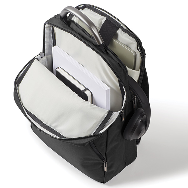 Rucsacul dublu Premium+ nu este doar un suport pentru laptop, ci și un loc pentru multe alte esențiale. În interior, veți găsi diverse compartimente care facilitează organizarea practică a interiorului. Acest lucru vă permite să stocați caiete, documente, telefoane, încărcătoare și multe alte articole.