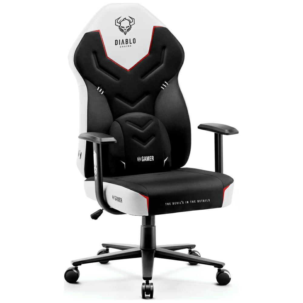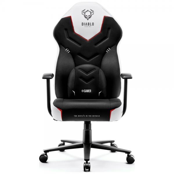 Scaun de gaming Diablo Chairs X-Gamer 2.0, Normal Size, Recliner, Suport Lombar / Cervical, Ergonomic, Ajustabil, Alb / Negru Cod produs: DIA-176816
