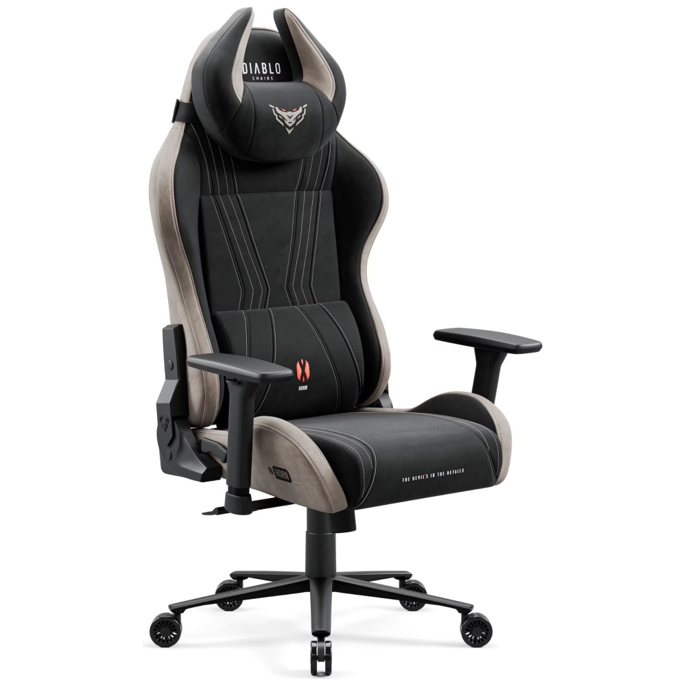 Scaun de gaming Diablo Chairs X-Horn 2.0, Normal Size, Recliner, Suport Lombar / Cervical, Ergonomic, Ajustabil, Black / Camel Cod produs: DIA-180199