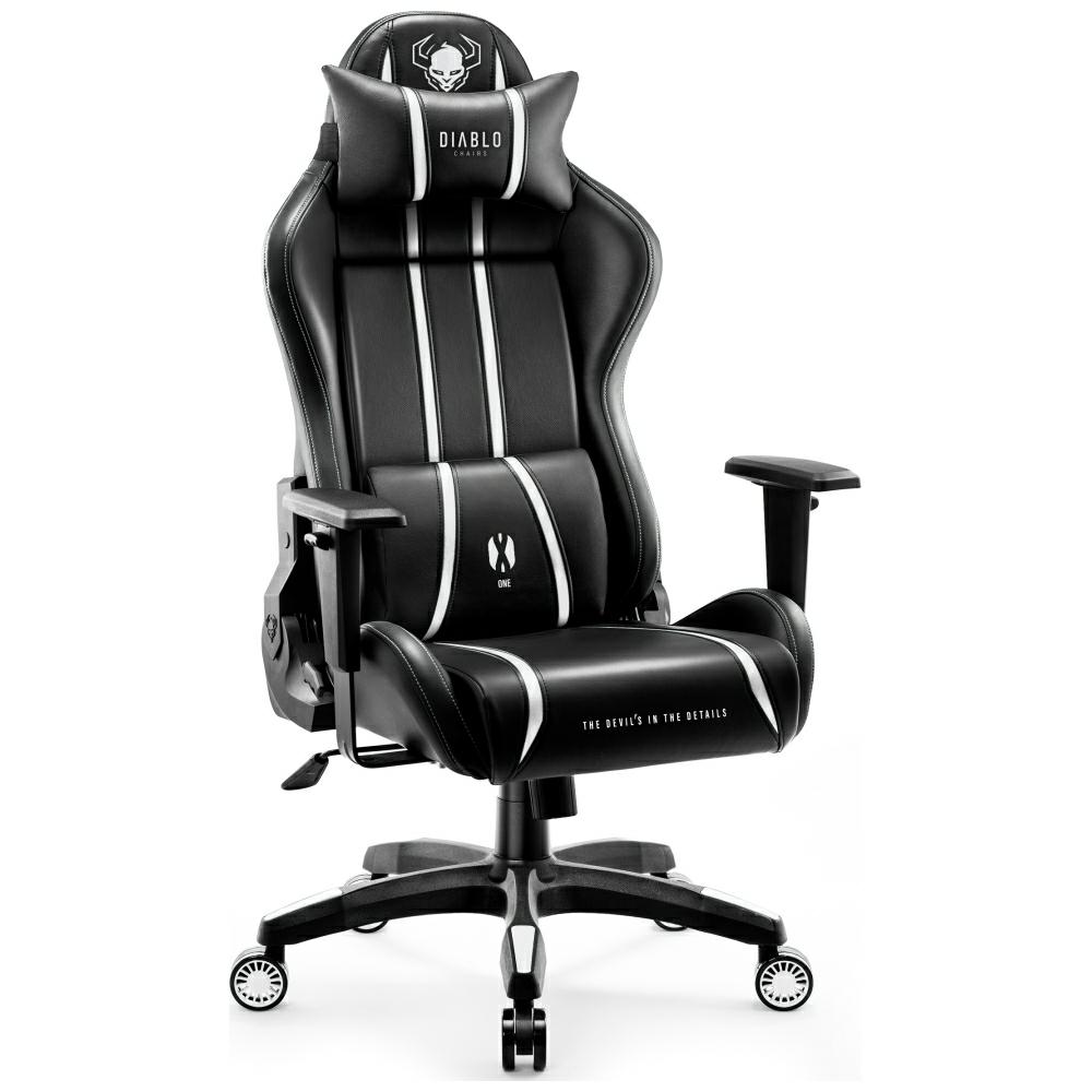 Scaun de gaming Diablo Chairs X-One 2.0, Normal Size, Recliner, Suport Lombar / Cervical, Ergonomic, Ajustabil, Negru / Alb Cod produs: DIA-176824