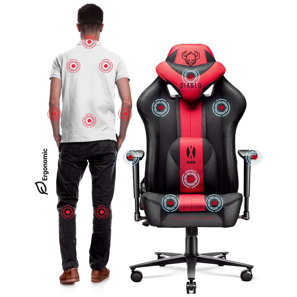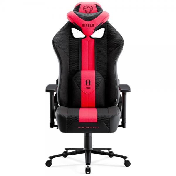 Scaun de gaming Diablo Chairs X-Player 2.0, King Size, Recliner, Suport Lombar / Cervical, Ergonomic, Ajustabil, Negru / Rosu